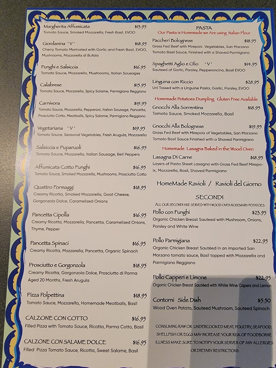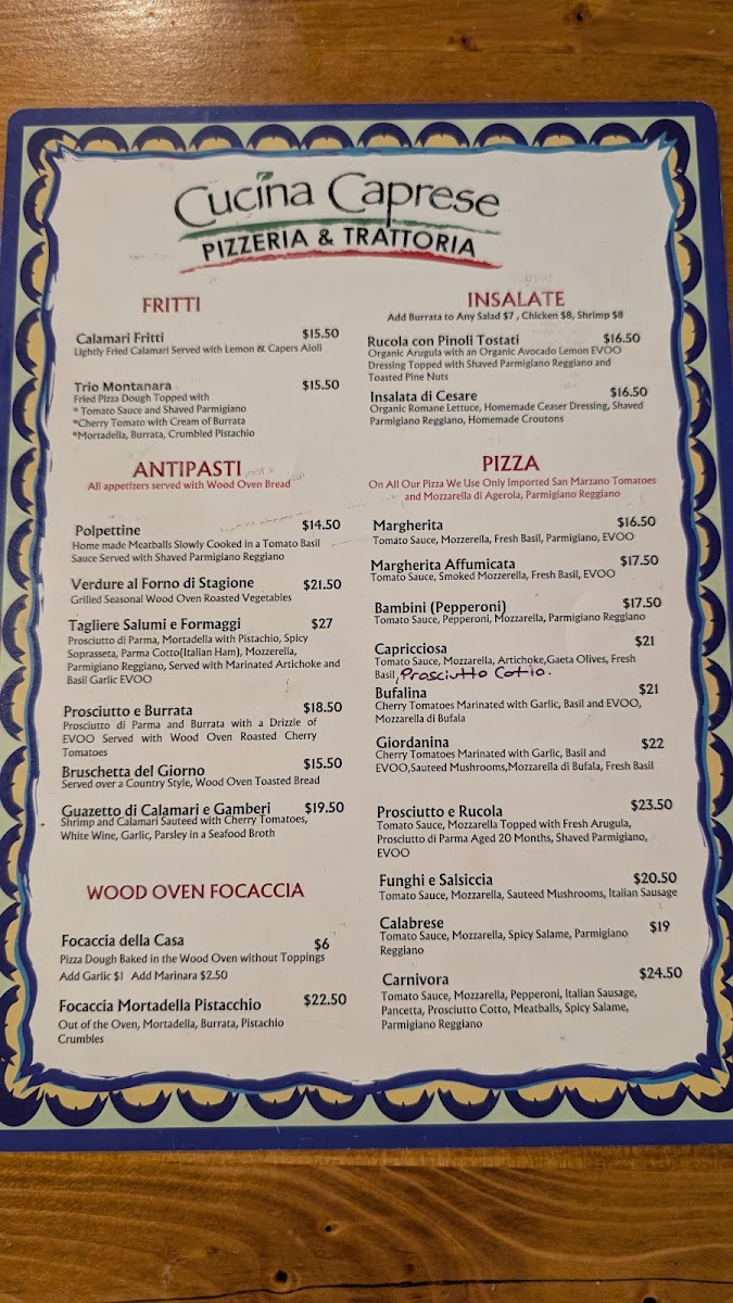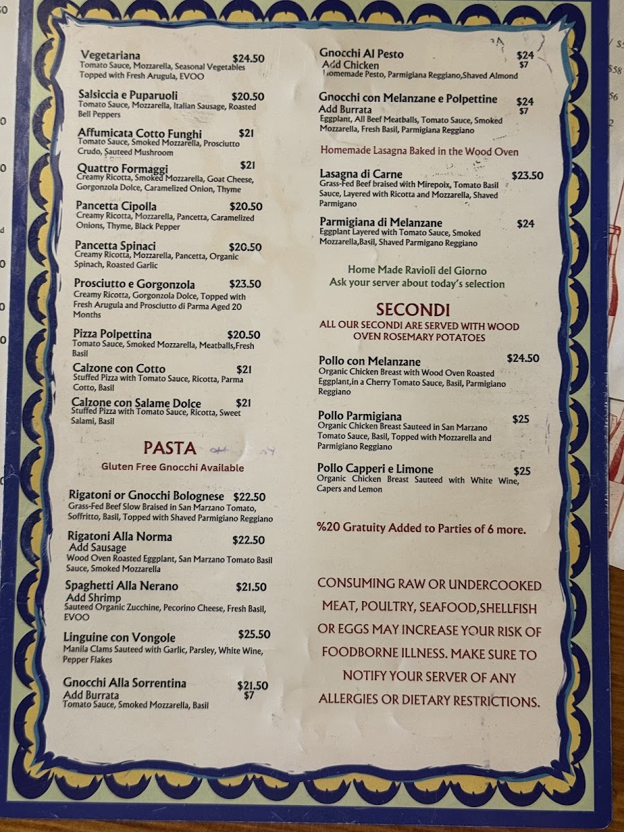 Prosciutto di Parma, Imported burrata with a drizzle of EVOO served with Wood Oven Roasted Cherry Tomatoes and Wood Oven Bread