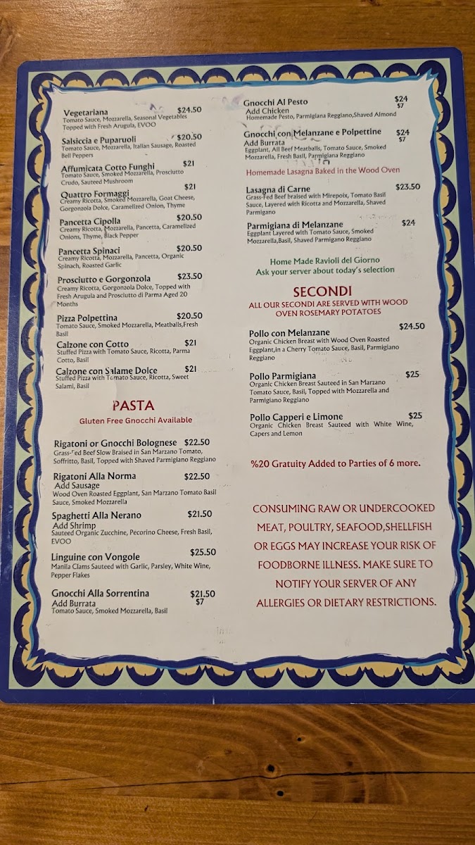 Grass fed beef with Sofritto vegetables, San Marzano tomato basil sauce, finished with shaved parmigiano.