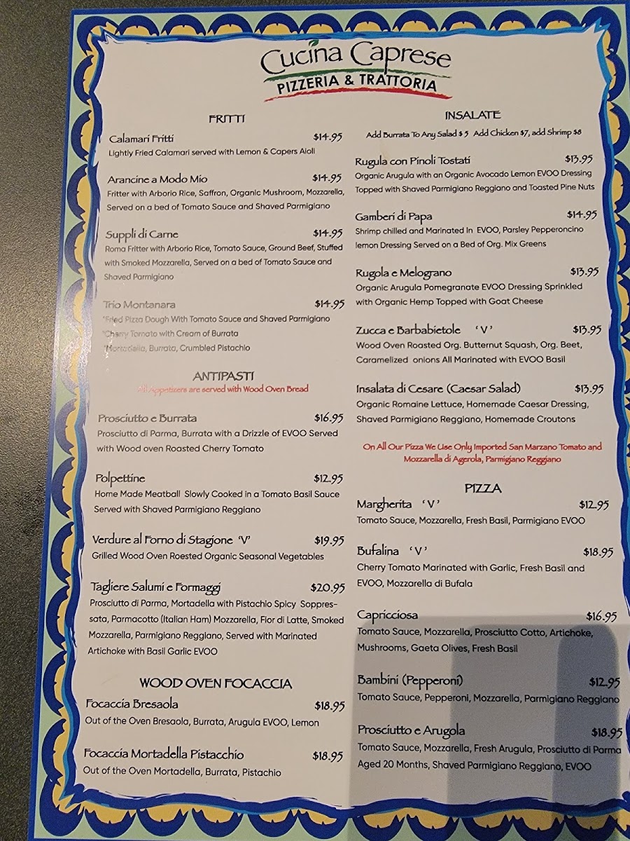 San Marzano Tomatoes, Fresh Mozzarella Basil, Parmigiano Reggiano, Extra Virgin Olive Oil